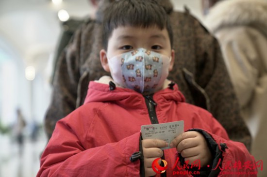 2020年12月27日上午,京雄城际铁路全线开通运营,一位小朋友手里拿着雄安到北京西的车票。人民网 宋烨文摄