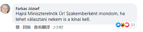网民法尔考什表示也想接种中国疫苗,他写道:“总理加油!作为专业人士,我想说,我也要接种中国疫苗。”
