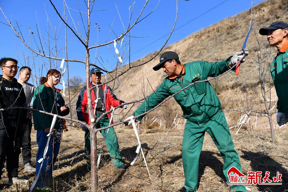 新天水讯【记者周文涛 景春燕】3月3日,清水县金集镇金欣果农业专业合作社联合社的社员们抢抓春季晴好天气,忙着给苹果树修剪定型。立春过后,天气回暖,果树开始萌芽,正是开展果树春季管理的关键时期,此时剪枝可避免树枝过度生长,从而影响果树结果,还可以减少病虫害,确保果树丰产丰收。