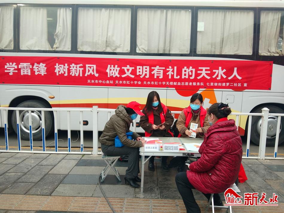 新天水讯【记者 黄虹】3月5日,秦州区七里墩街道罗玉二社区联合天水市中心血站,在龙城广场开展了“学雷锋 树新风 做文明有礼的天水人”主题宣传和文明实践活动。