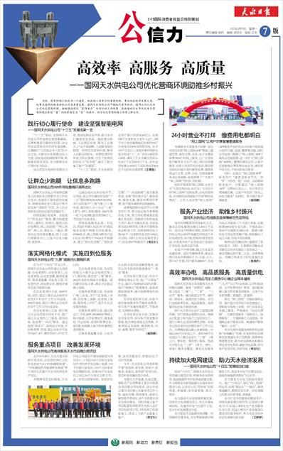 公信力丨国网天水供电公司:高效率 高服务 高质量