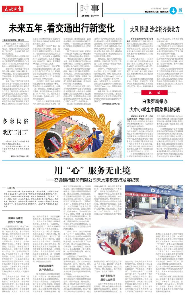 公信力 | 交通银行股份有限公司天水麦积支行:用“心”服务无止境