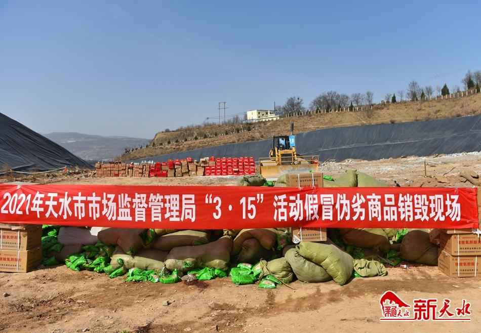 新天水讯【记者 李旺旺】3月15日,天水市市场监管综合行政执法队在天水市秦州区水家沟垃圾处理厂举办了“3·15国际消费者权益日”假冒伪劣商品公开销毁活动。