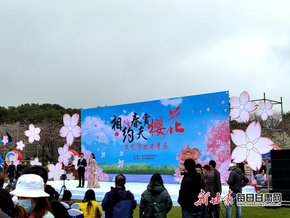 3月11日,走进武汉东湖樱园,参加“相约春天赏樱花”首场文艺演出活动;