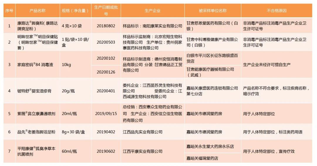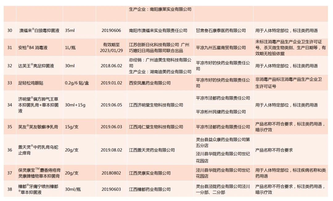 不合格消毒产品名单
