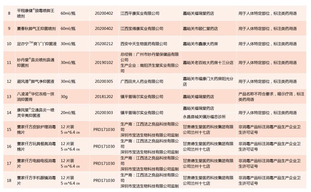 新甘肃客户端讯(新甘肃·每日甘肃网记者 金奉乾)为严厉打击不合格消毒产品,甘肃省卫生健康委综合监督局公布102种不合格消毒产品名单。