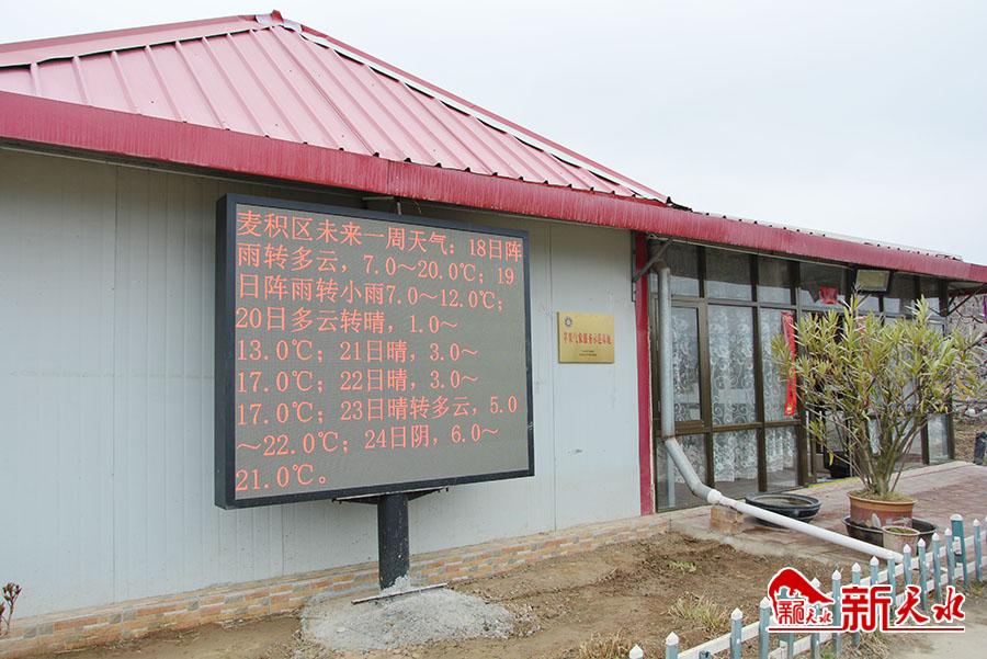 据介绍,市气象局和麦积区气象局联合在南山建立了一个为农服务的苹果和大樱桃示范基地,通过这个示范基地引领和辐射气象为农服务工作的开展。借助这些设备和仪器,可以把气象资料及时地传送到田间地头。比如2月份以来我市气温持续偏高、降雨偏少,果树发育期较正常年份明显提前,结合这些气候特点,及时提醒果农推迟疏花期,有针对性地开展专题服务;同时依托“天水市林果气象大数据平台”及“天水老果农”微信平台,为果农提供点对点的直通式服务。