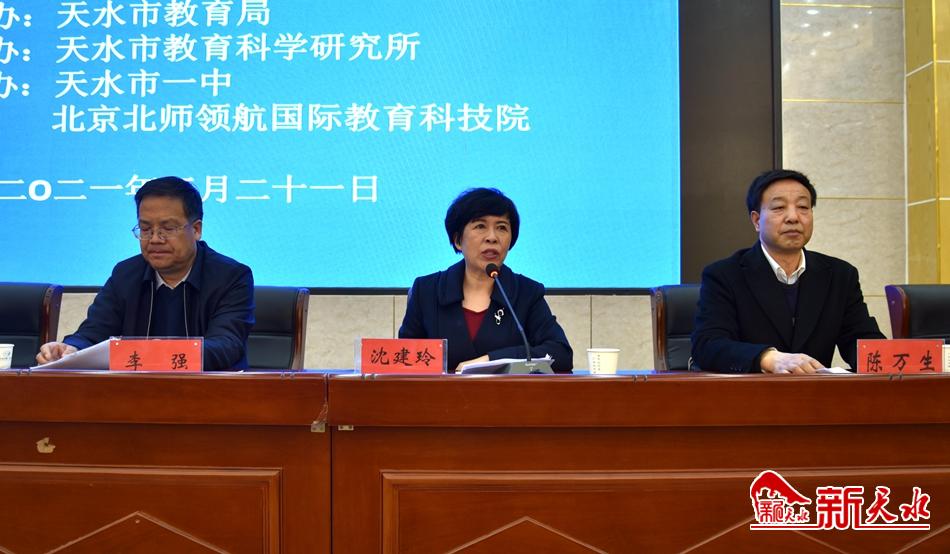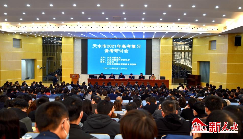 新天水讯【记者张娟】3月21日,天水市2021年高考复习备考研讨会在天水市第一中学举行。会议分析了今年高考面临的形势,解读交流了备考策略,部署了第二、三轮备考工作,并邀请高考指导专家进行专题讲座。市教育局局长沈建玲出席研讨会开幕式并讲话。