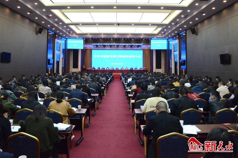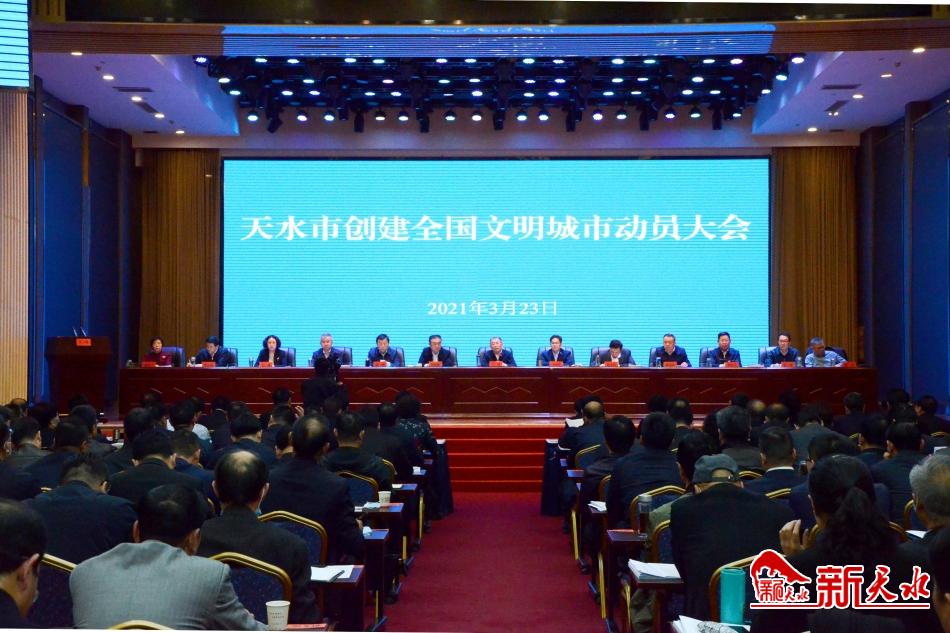 新天水讯【记者 王晓馨】3月23日,天水市创建全国文明城市动员大会召开,市委书记王锐出席大会并讲话。他强调,全市上下要凝心聚力、务实苦干,以最大的信心决心,最佳的精神状态,最实的工作作风,高水平、高标准、高质量完成各项创城任务,确保新一轮全国文明城市创建取得更好的成绩。