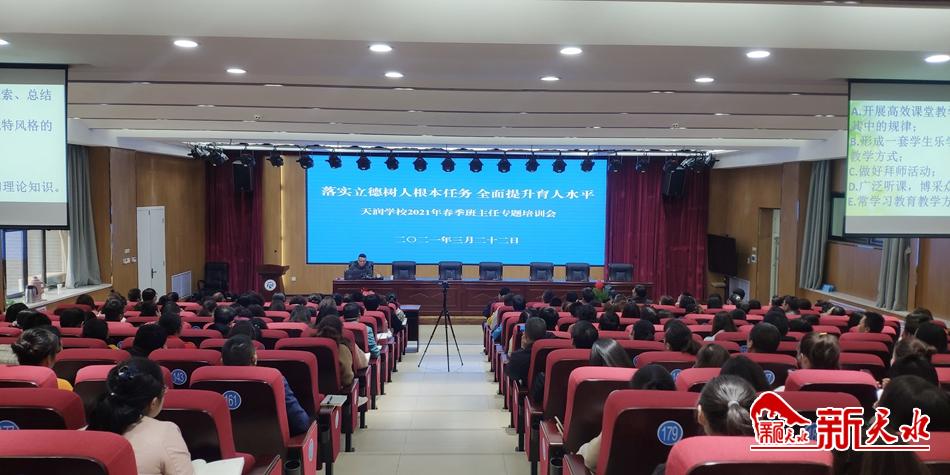 新天水讯【通讯员李建武】为了进一步提升学校班主任队伍的整体素质,提高班主任工作的艺术水平和工作实效,麦积区天润学校于3月22日下午举办了以“落实立德树人根本任务、全面提升育人水平”为主题的班主任专题培训。特邀天水师范学院教师教育学院杨元元教授,麦积区优秀教师陈玮和金燕老师进行专题讲座。