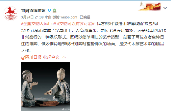3月23日,四川日报发起 #全国文物大battle#,向全国各省发起大比拼。全国文物大battle,怎能少了天水文物。