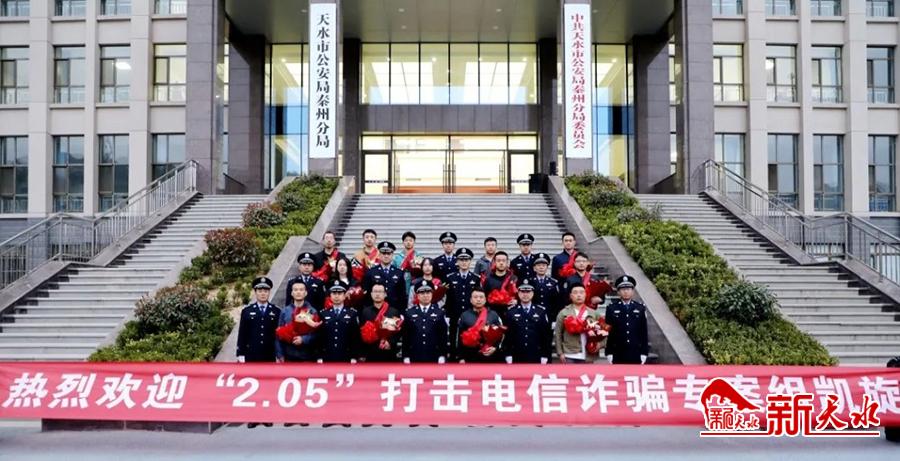新天水讯【记者 蔚军平】3月25日下午,秦州公安分局举行仪式,欢迎“2·05”电信网络诈骗专案组民警凯旋。