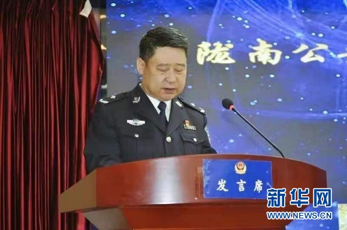 陇南市公安局党委委员石振军宣布陇南公安“网上户籍室”微信小程序上线运行。陇南市公安局供图