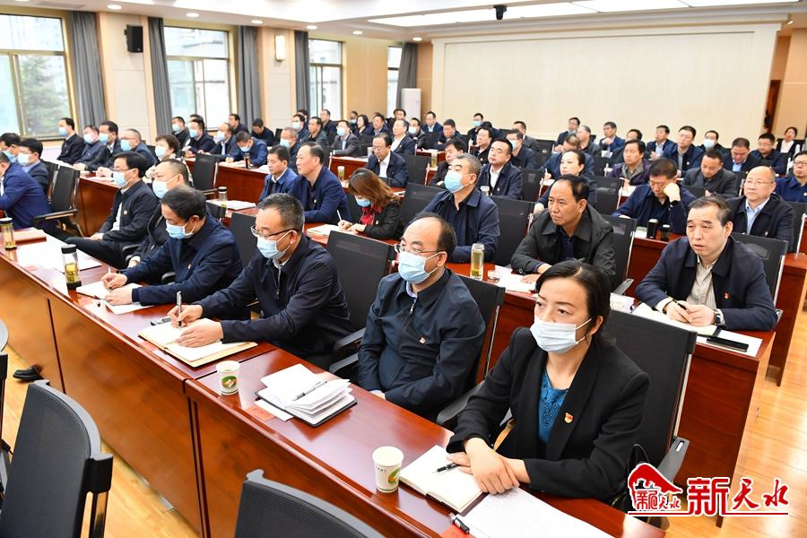 市领导王锐、王国先、蒋晓强、赵卫东、郝觉民、赵四辈、张建杰、贾义翔、王燕、宋英武、景丹等在天水分会场收听收看会议。