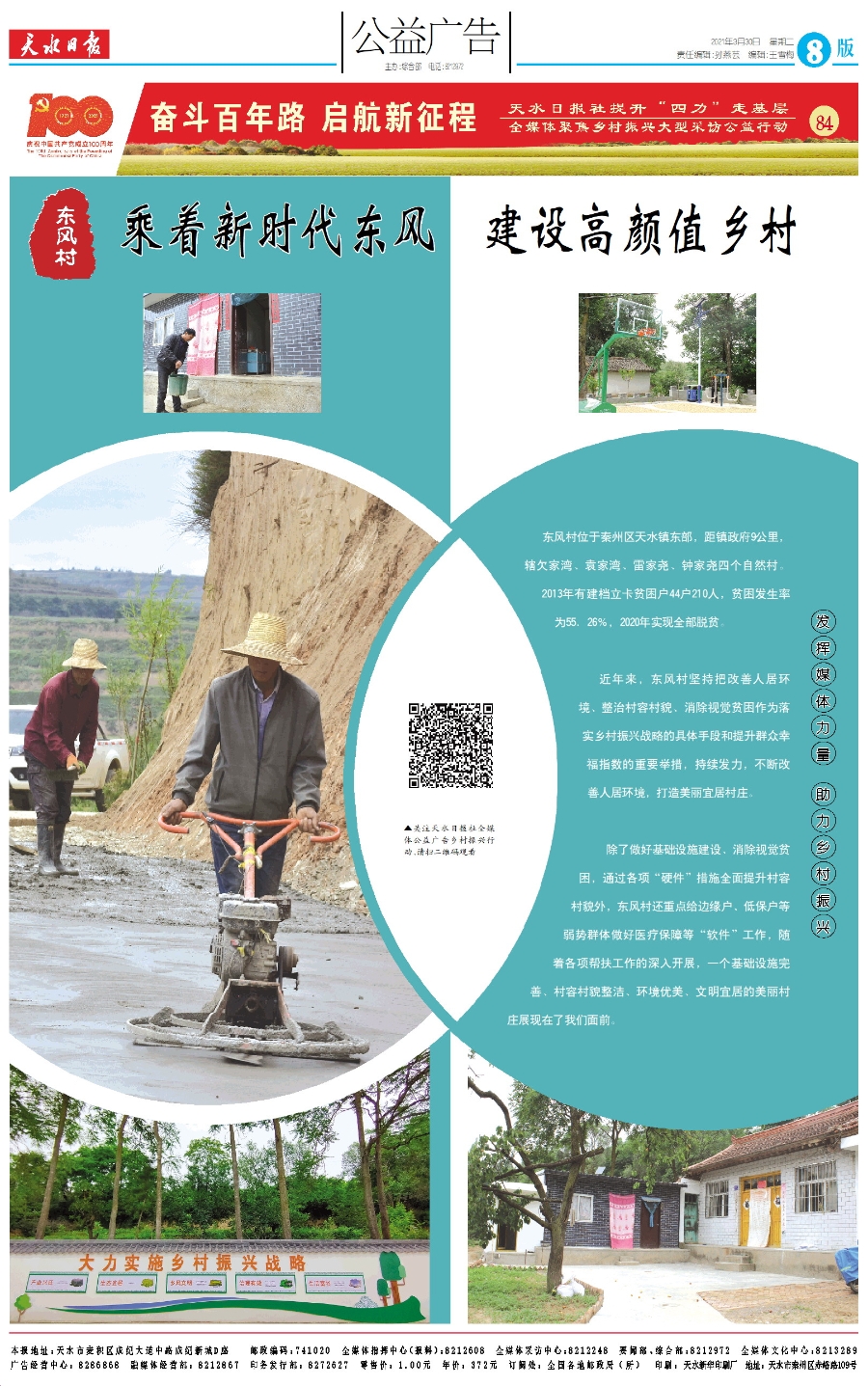 从天水镇出发,沿着宽敞平坦的硬化水泥路蜿蜒前行,十多分钟便能到达东风村。在东风村党群服务中心附近的文化广场上,不仅有新修的篮球架,还有配套的多种体育锻炼设施,村巷道实施了水泥硬化,春日暖阳下,路边的花坛里冒出不少翠绿的嫩芽,一幅美丽的乡村画卷展现在眼前。