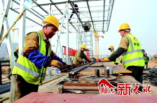 近日,位于天水市国家级经济技术开发区的陇丰源集团隆旗科技(天水)智能终端制造产业园项目施工现场热火朝天,只见塔吊林立,捆绑钢筋、堆砌砖头、浇筑水泥……建筑工人们正挥汗如雨进行楼房主体结构的施工,加快推进项目建设。