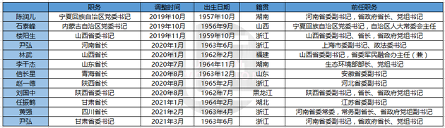 公开报道显示,自2019年10月以来,黄河流域涉及的9个省区均进行了党委/政府一把手调整。其中,山西、陕西和甘肃为“双调整”,尹弘则是一年多内两次调整。