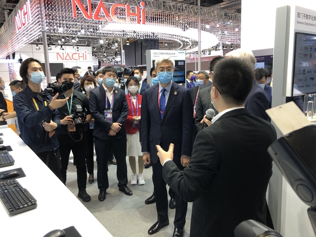 去年11月初第三届进博会期间,城叔在德国西门子展位上偶遇了前来参观的河南交易团,带队的正是尹弘。他顶着一头从援藏之后就白了的头发,很好被辨认出来。