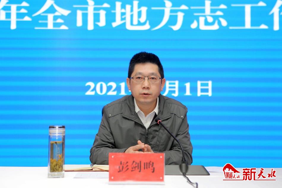 新天水讯【记者 赵蔓】4月1日,全市地方志工作会议召开。副市长彭剑鸣在会上要求,各县区、各单位要切实加强对地方史志工作的领导,把地方史志工作列入政府和单位工作议事日程,做到领导到位、机构到位、经费到位、人员到位、条件到位,确保与新时代地方志事业发展相适应。
