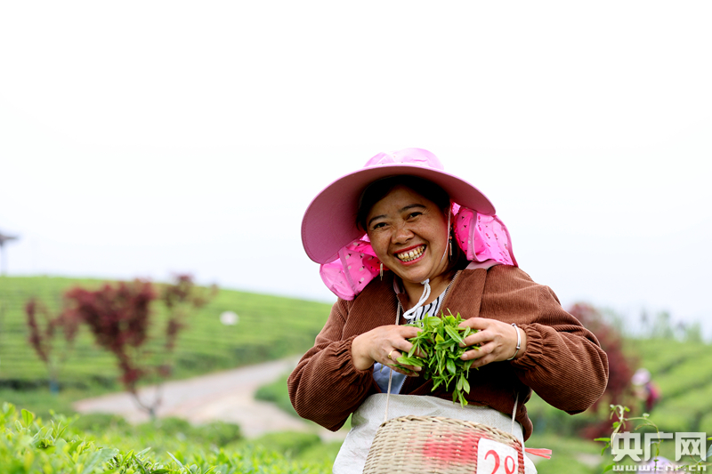 央广网贵阳4月3日消息 4月2日,记者来到贵州省清镇市红枫湖镇芦荻哨村,茶农们正背起竹篓在茶园里采茶,脸上洋溢着收获的喜悦。