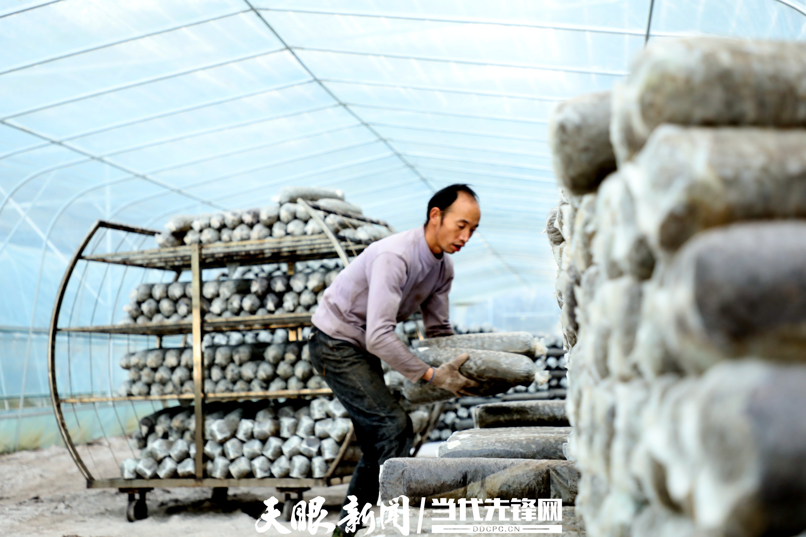 一堆堆菌棒从生产车间用车辆运到大棚里冷却后,再摆放到架子上,一个星期左右就长出了香菇。看着一匡匡采下的香菇,基地负责人张吉华面露笑容:“像这种花菇品质很好,现在不忙上市,烘干后会卖得好一点。”