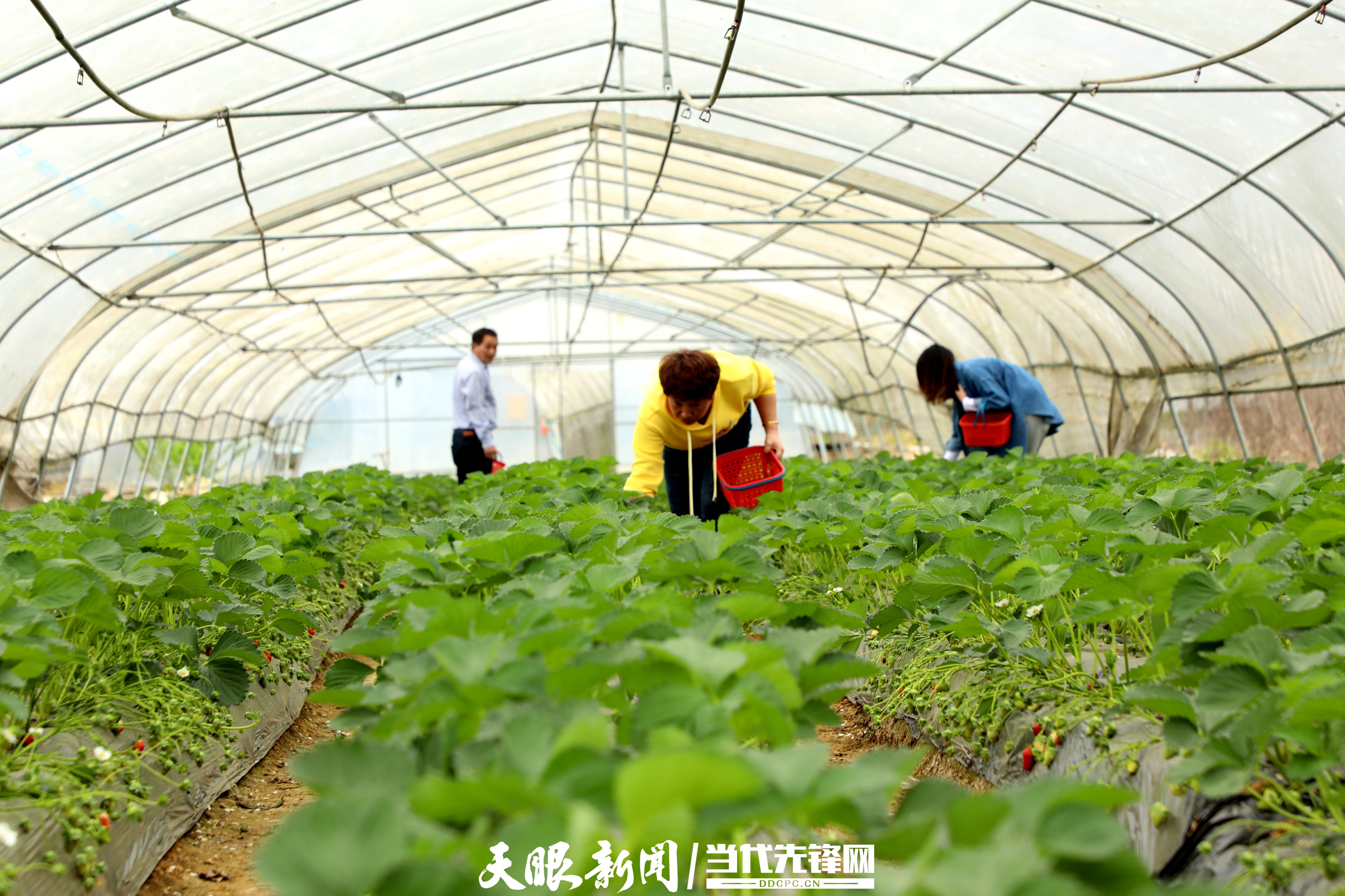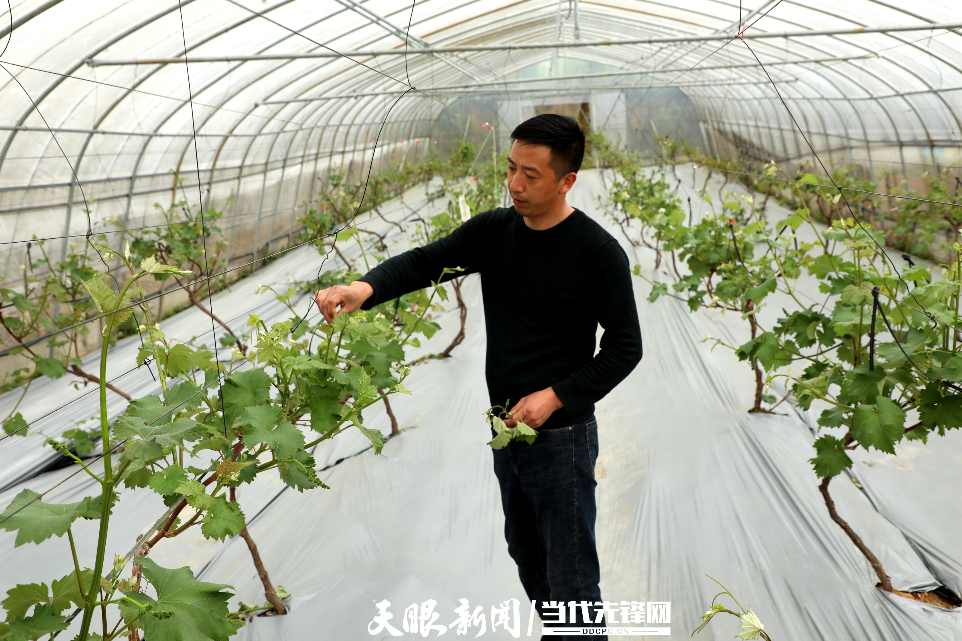 距食用菌基地不到一公里的“葡香谷”产业基地,12个大棚里第一批成熟的草莓已被游客摘得所剩无几,青涩的嫩果正成长起来“接班”,其余130个大棚里葡萄刚挂上嫩果。“下一批草莓马上长起来,不过葡萄才是‘重头戏’,我这100多个棚的葡萄成熟才安逸!”基地负责人杨志走进棚内,扶起一株嫩绿的葡萄树,言语间充满自豪。