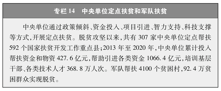 深度贫困地区是贫中之贫、坚中之坚。通过脱贫攻坚,“三区三州”⑨等深度贫困地区突出问题得到根本解决,基础设施和公共服务水平显著提升,特色主导产业加快发展,社会文明程度明显提高,区域性整体贫困问题彻底解决(专栏4)。