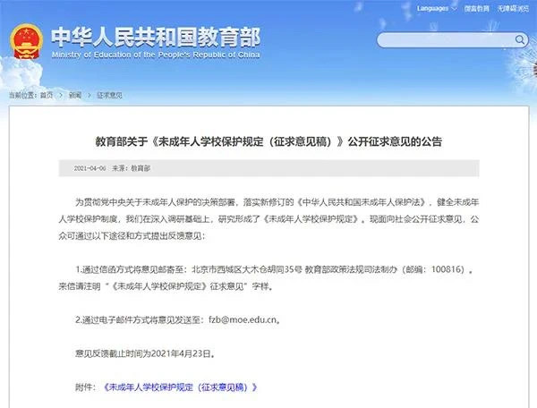 记者从教育部了解到,教育部日前就《未成年人学校保护规定(征求意见稿)》(以下简称《意见稿》)公开征求意见。意见稿对保证学生休息、预防校园欺凌、防治性侵等多方面作出明确规定。
