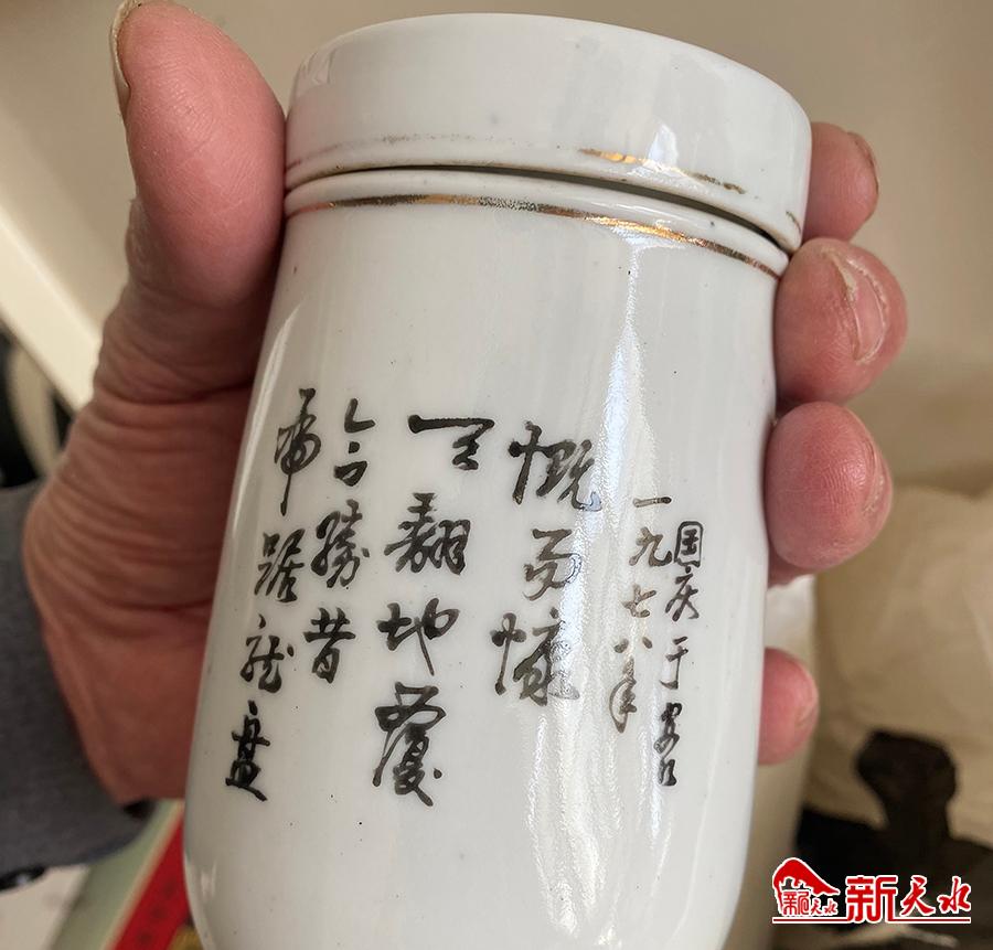 打开包了一层又一层的纸盒,张先生珍藏的杯子便映入了记者的眼帘。这是一个白色的瓷杯,印有一首诗和一只上山老虎,“一九七八年”的制作时间格外醒目。张先生告诉记者,这个杯子是从小和他一起玩到大的表哥参加工作后专门为他制作的,对于他来说意义非凡。