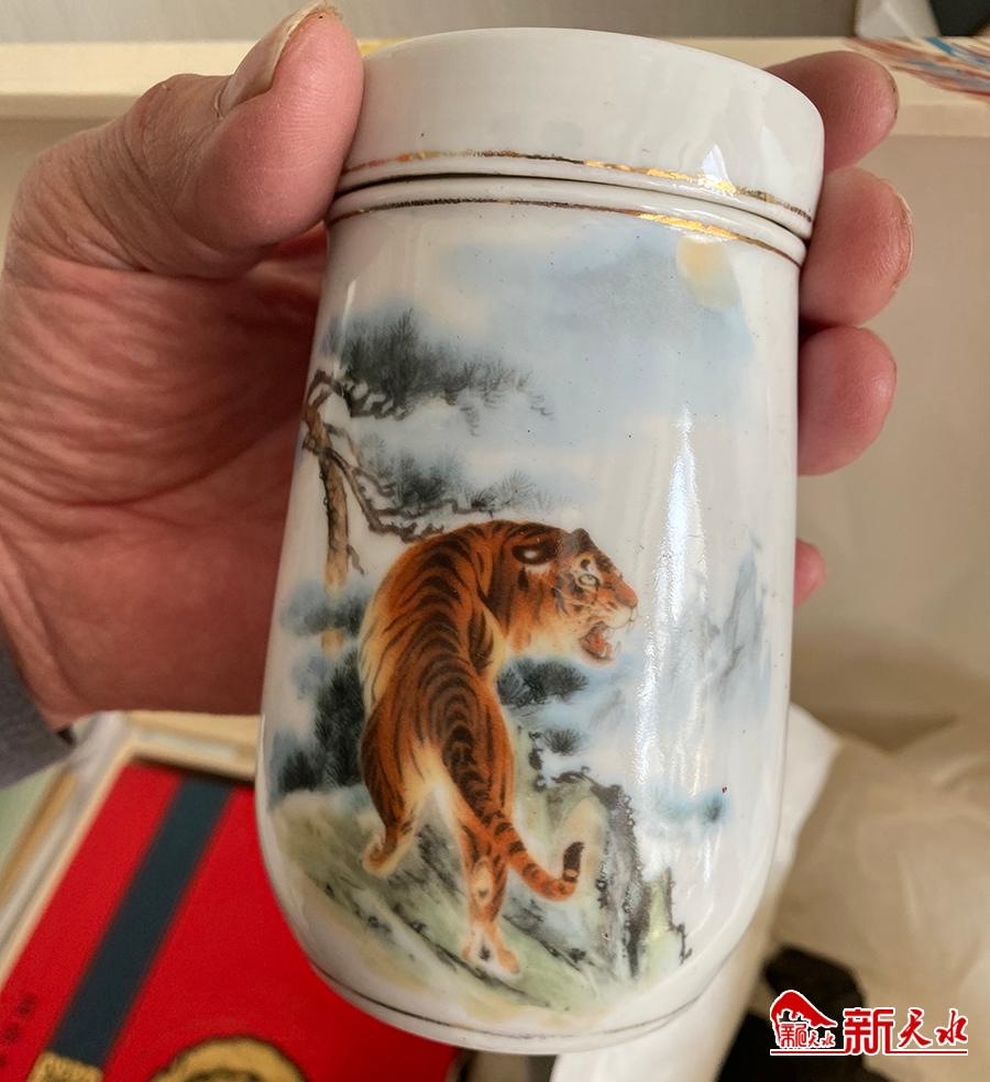 张先生说,1978年,他的表哥下乡到安口窑陶瓷厂工作,安口窑位于甘肃省华亭县东部的陇山深处,旧称安口窑,今名安口镇,是甘肃四大古镇之一。“我表哥手特别巧,自小我俩就喜欢在一起玩,感情比亲兄弟还亲。表哥参加工作后,便想着给我亲手做个礼物。我属虎,表哥说本来想仿着一些有名的国画,可国画中大多是下山虎,而下山虎寓意不好,于是他自己琢磨着给杯子上画上了一只上山虎,并选择了毛主席的《七律·人民解放军占领南京》中的一句‘虎踞龙盘今胜昔,天翻地覆慨而慷’写在了杯子上。”