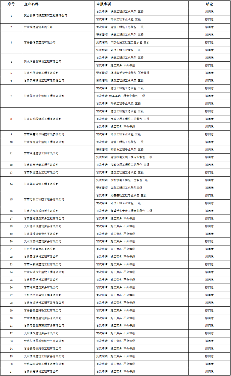 天水市2021年第三批建筑业企业资质审查意见的公示