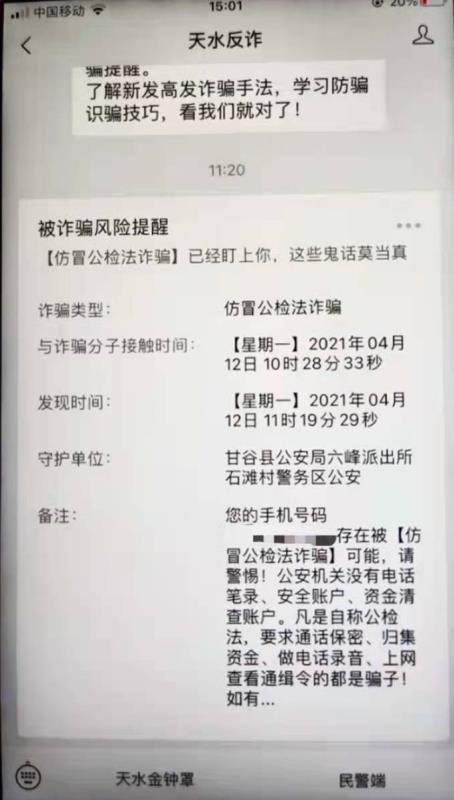 首例!“天水金钟罩”成功阻止一起电信诈骗案