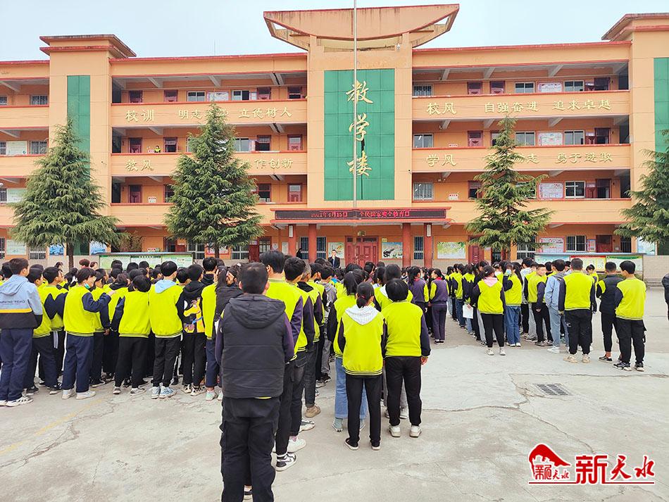 4月15日,是我国第六个全民国家安全教育日,为了推动国家安全宣传教育工作,增强学生的国家安全意识,秦州区皂郊中学开展了以“提高国家安全意识,增强国家安全责任”为主题的宣传教育活动。活动中,学生代表以国旗下演讲的方式对全校学生进行了宣讲。(新天水通讯员 王卫东 摄)