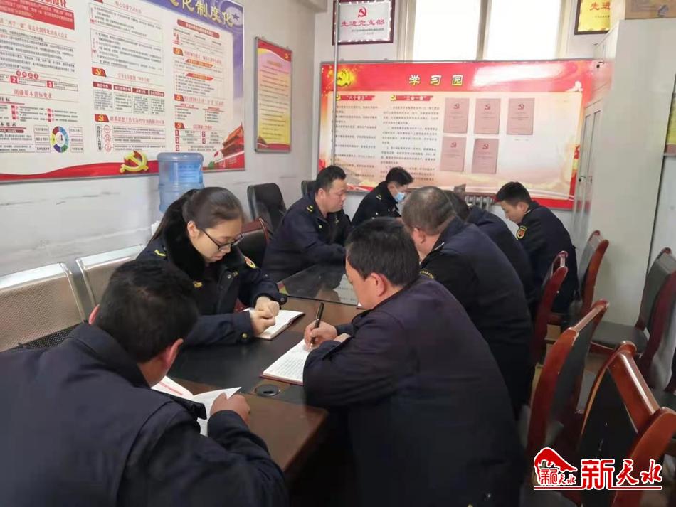 新天水讯 【通讯员 李彦峰】4月15日,为扎实做好党史学习教育活动,深入系统学习党的历史和党的创新理论,进一步拓展党史学习教育的深度和广度,秦州区城市管理综合执法局玉泉中队党支部组织全体党员干部召开党史学习教育系列活动。