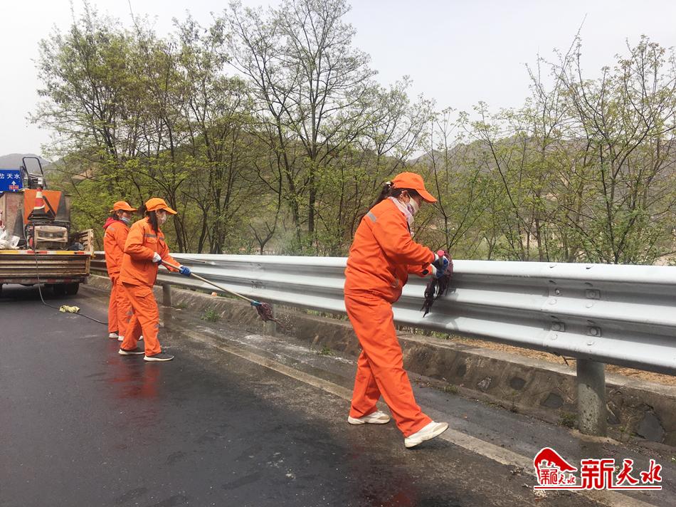 整路容增体验。结合“机关人员下基层”活动,机关干部走出办公室,俯下身子、放下架子、挑起担子,与一线职工相互配合,对路面落石、公路边沟、路边堆积物、路面抛洒物、路肩、边坡杂草进行彻底清理;对百米桩、防撞墩、波形护栏、标志标牌等交安设施及公路附属设施进行清洗,使其鲜艳醒目,全面整治路域环境,确保辖区国省干道公路路容路貌干净整洁,改善群众出行体验。