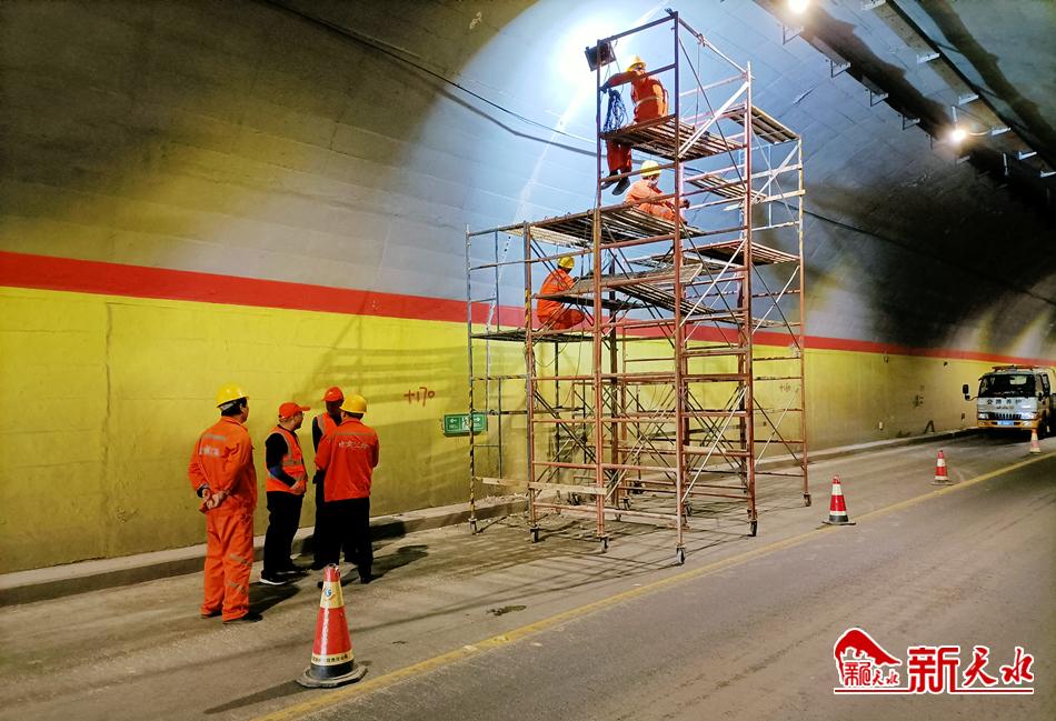 排隐患筑安全。为了全面提升隧道的安全通行能力,该段对金龙山隧道内的用电线路进行改造。通过进行拱圈、侧墙开槽作业,指示牌埋设电缆线等措施,提升隧道内的安全系数,施工期间严格按照安全规范布设作业区,保障作业人员以及过往车辆的安全。