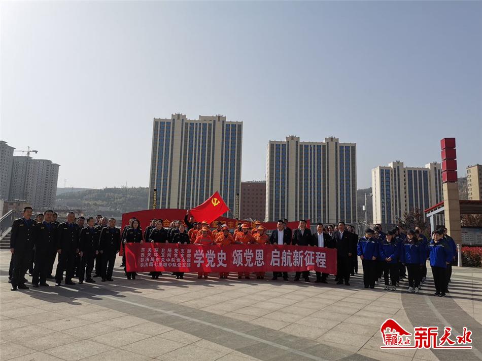 4月16日,秦州区城乡环卫治理中心西关环卫所党支部、东关环卫所党支部联合综合执法局东关中队党支部、七里墩中队党支部开展“学党史颂党恩 启航新征程”党史学习教育百人大合唱活动,初心与使命在歌声中不断传承,营造了学党史、知党情、感党恩、跟党走的良好氛围。