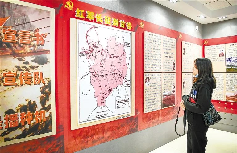 参观者在甘谷县红军长征纪念馆驻足观看。本组摄影:新甘肃·甘肃日报记者 郁婕