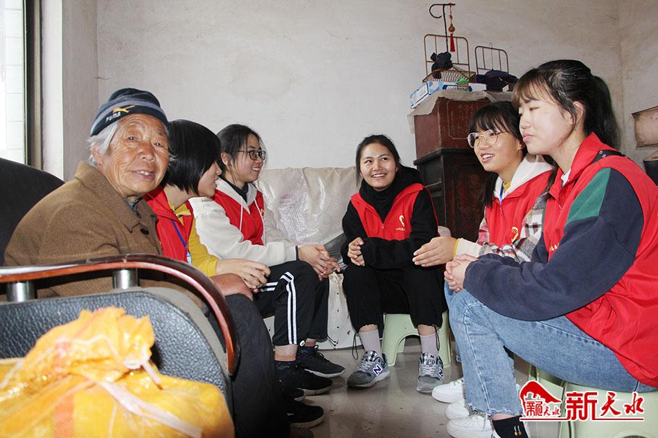 除了留守儿童,孤寡老人也是志愿者们服务的对象。每个周末,志愿者们都要到学校周边的孤寡老人家中去。