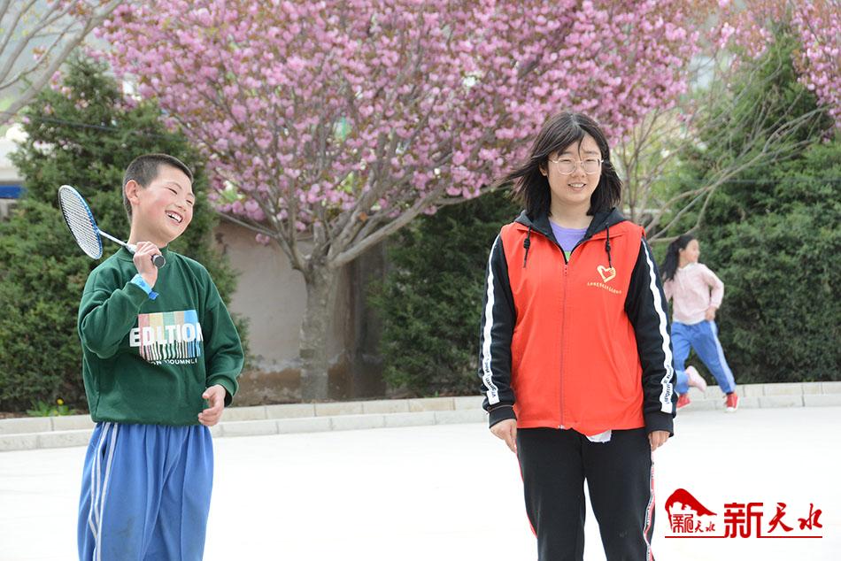 4月15日下午,微风和暖,春光融融,郑子洋在操场上放声大笑, 露出了一口整齐的牙齿。郑子洋是秦州区太京镇友好小学四年级的学生,在当天下午的一场羽毛球比赛中,他赢了!