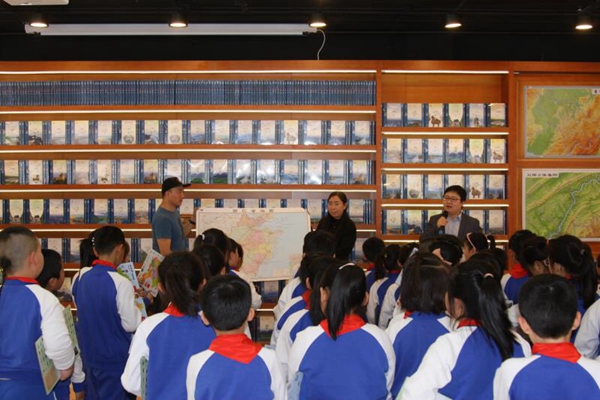 在自然资源部地图主题书店内,举办了一场“珍爱地球 人与自然和谐共生”校外科普课。受访者供图