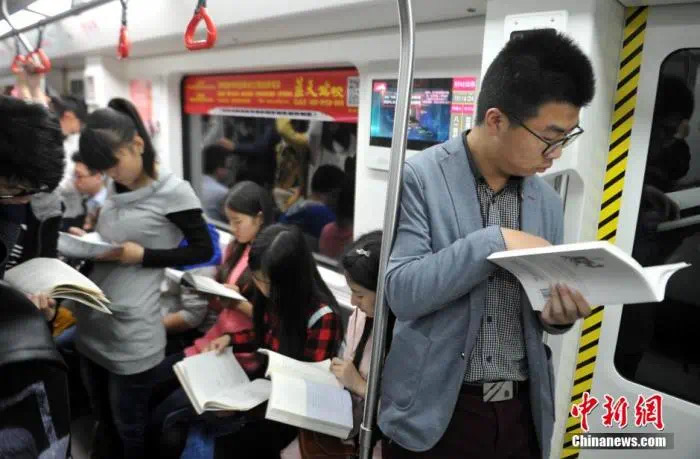 资料图:此前,来自南昌市7所高校的50余名年轻学生在地铁上共同阅读书籍。刘占昆 摄