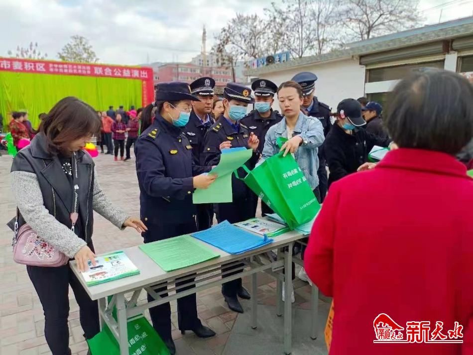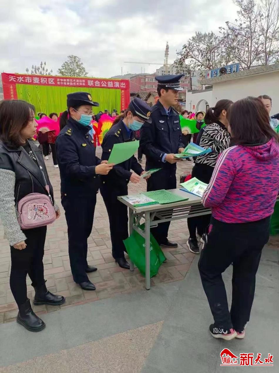 4月23日,天水市麦积区城市管理综合执法局道北执法中队利用党团活动日,在辖区内开展法制宣传活动,从而推动党史学习教育走深走实。(曹志岐 张晓鹏)