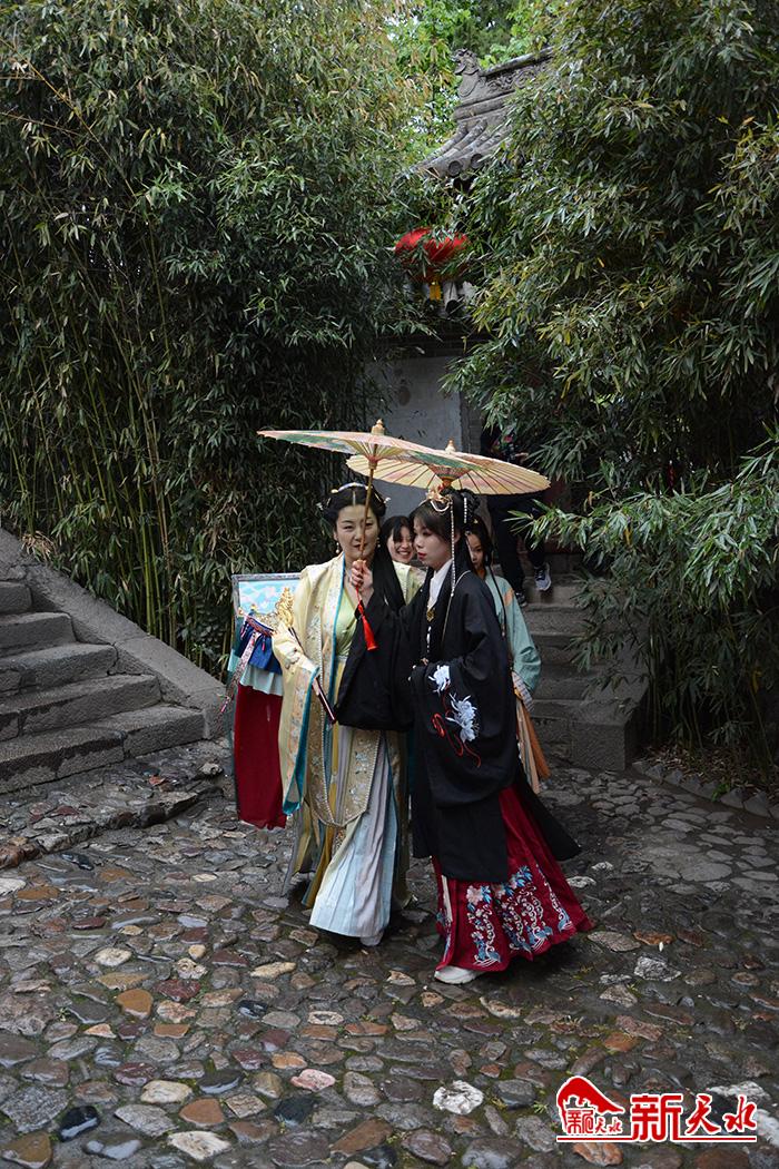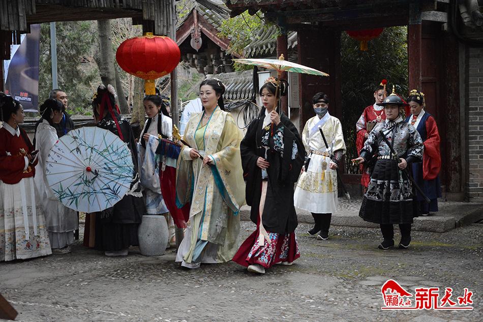 当春雨漫过千年的古巷,泛着青苔的长条石阶上,婆娑的身影、轻盈的脚步,裙带舒卷,环佩悦耳,一群身着汉服的美丽女子翩然而至,她们拾级而上,赴一场与玉泉观盛大的约定,“百年礼赞·畅游玉泉观文化活动”启动仪式的帷幕缓缓拉开。
