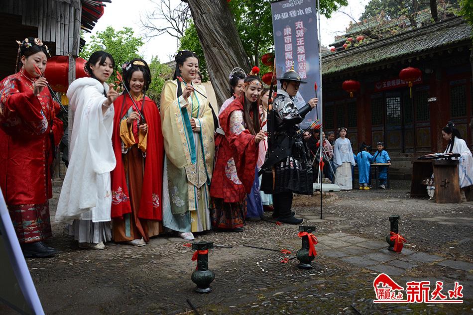 启动仪式上,来自天水汉服协会的“汉服迷”们向游客们展示了汉服的雅致和神韵,他们还和游客共同参与了投壶、射箭等趣味游戏,广大的太极拳爱好者也小雨中为游客们表演了太极拳。