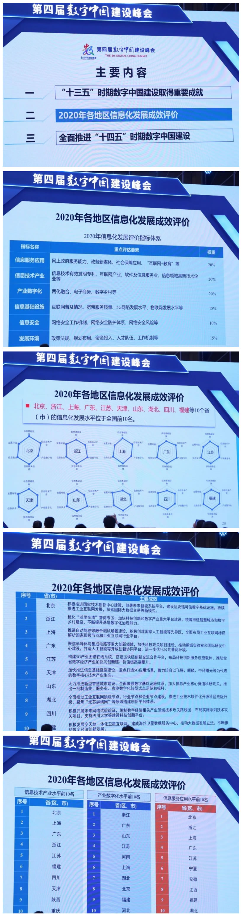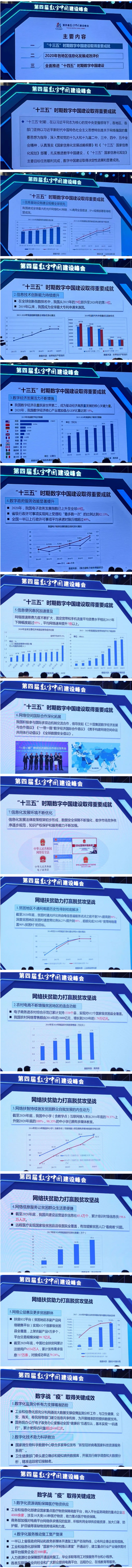 报告包含“十三五”时期数字中国建设取得重要成就、2020年各地区信息化发展成效评价、全面推进“十四五”时期数字中国建设三个方面。传播君将在现场拍到的报告PPT与大家分享。