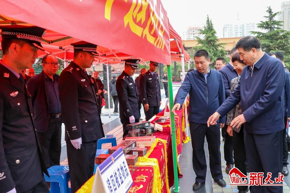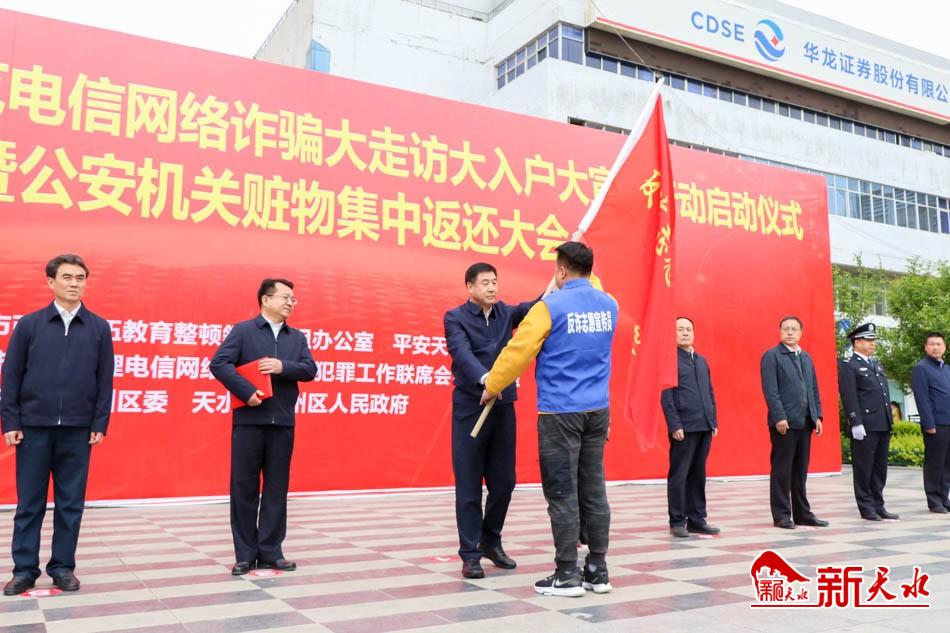 新天水讯【记者 赵蔓】为深入贯彻落实习近平总书记关于打击治理电信网络诈骗犯罪工作的重要指示精神,进一步推进全省“全民防电诈、全社会反电诈”宣传月活动的热潮,扎实开展政法系统“我为群众办实事活动”,4月27日上午,由天水市政法队伍教育整顿领导小组办公室、平安天水建设领导小组办公室、天水市打击治理电信网络新型违法犯罪工作联席会议办公室联合主办的“我为群众办实事·防范电信网络诈骗大走访大入户大宣传行动启动仪式暨公安机关赃物集中返还大会”在龙城广场举行。