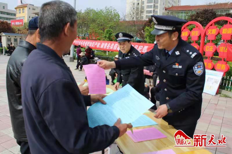 新天水讯【记者刘蕾】4月26日,秦安县公安局联合秦安县市场监督管理局等部门在兴国镇文化广场组织开展了主题为“全面加强知识产权保护,推动构建新发展格局”知识产权宣传活动。