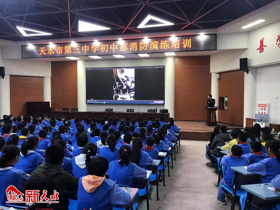 新天水讯【通讯员 张菁】为了增强了全体师生的消防安全意识,掌握一般灭火器材的操作使用方法,提高师生应对突发事件的能力,4月27日下午,天水市三中初中部举行了消防安全知识培训及疏散演练活动。