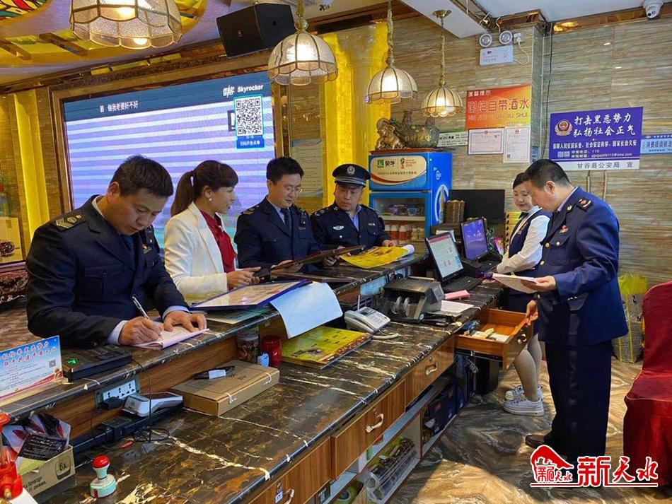 新天水讯【通讯员 黄少华】4月28日,为确保“五一”节日期间市场规范经营,营造放心、安全的旅游消费环境,针对酒吧、KTV等因夜间经营的行业特点导致日常监管频次较少的问题,甘谷县市场监管综合行政执法队联合县文化市场综合行政执法队,开展了对县域内带餐KTV、酒吧等娱乐场所的夜间突击检查。